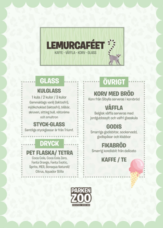Lemurcaféet ligger i djurparken vid lemurernas värld och gibbonaporna! Här kan du ladda upp med smarrig energi innan du fortsätter din tur runt i djurparken! 🥰