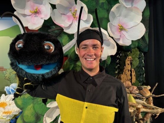 Detta är första sommaren för Jakob som Humlan Djojj på Parken Zoo och i höst surrar han vidare på Sverigeturné med Djojj räddar blomsterängen.